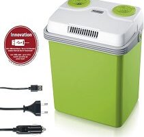 - Una nevera portátil con capacidad de entre 10l a 24l, suele considerarse una nevera pequeña. Estas son las más útiles para viajes cortos en coche, en pareja o con amig@s, tienen capacidad suficiente para poder llevar tus alimentos y bebidas frescas todo el día.